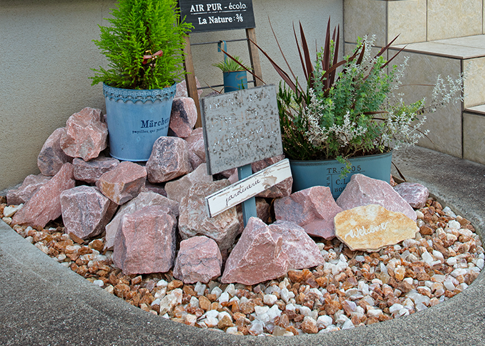 カラー砂利(ピンク・メープル)・みかげ砂利・再生路盤材